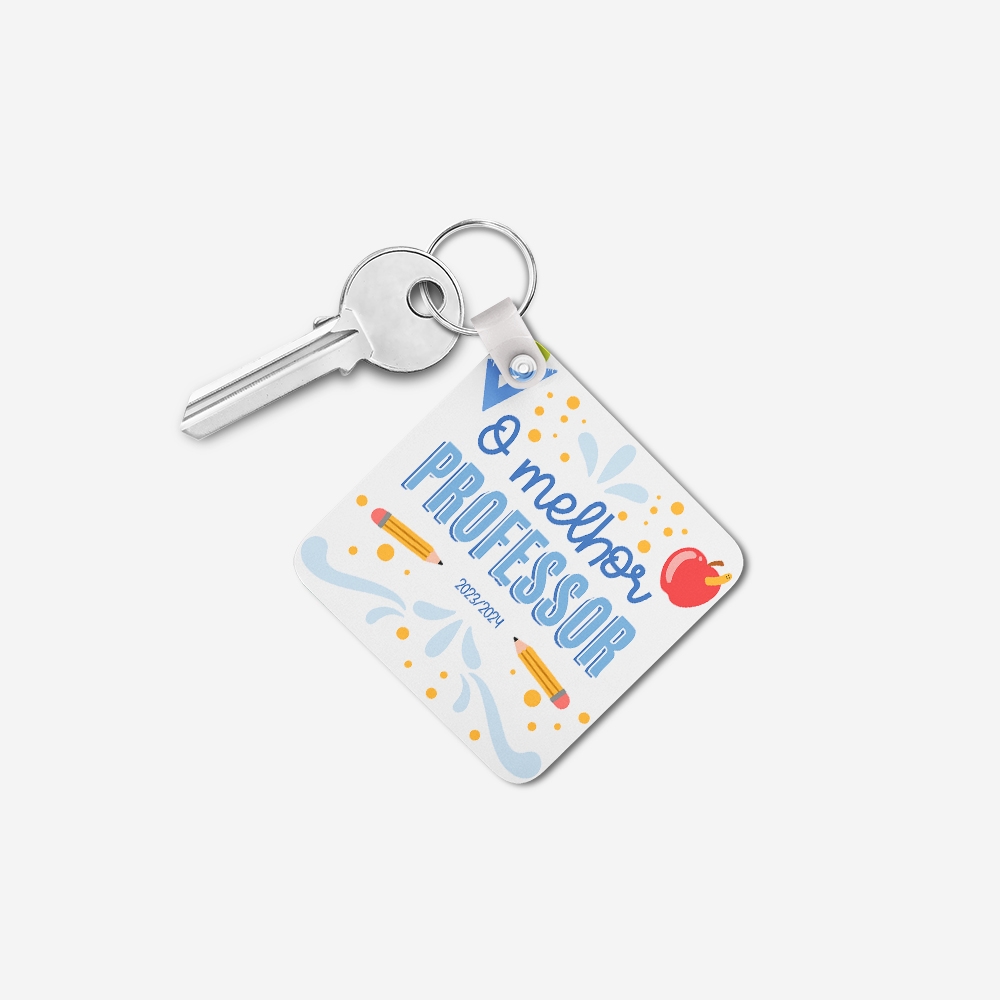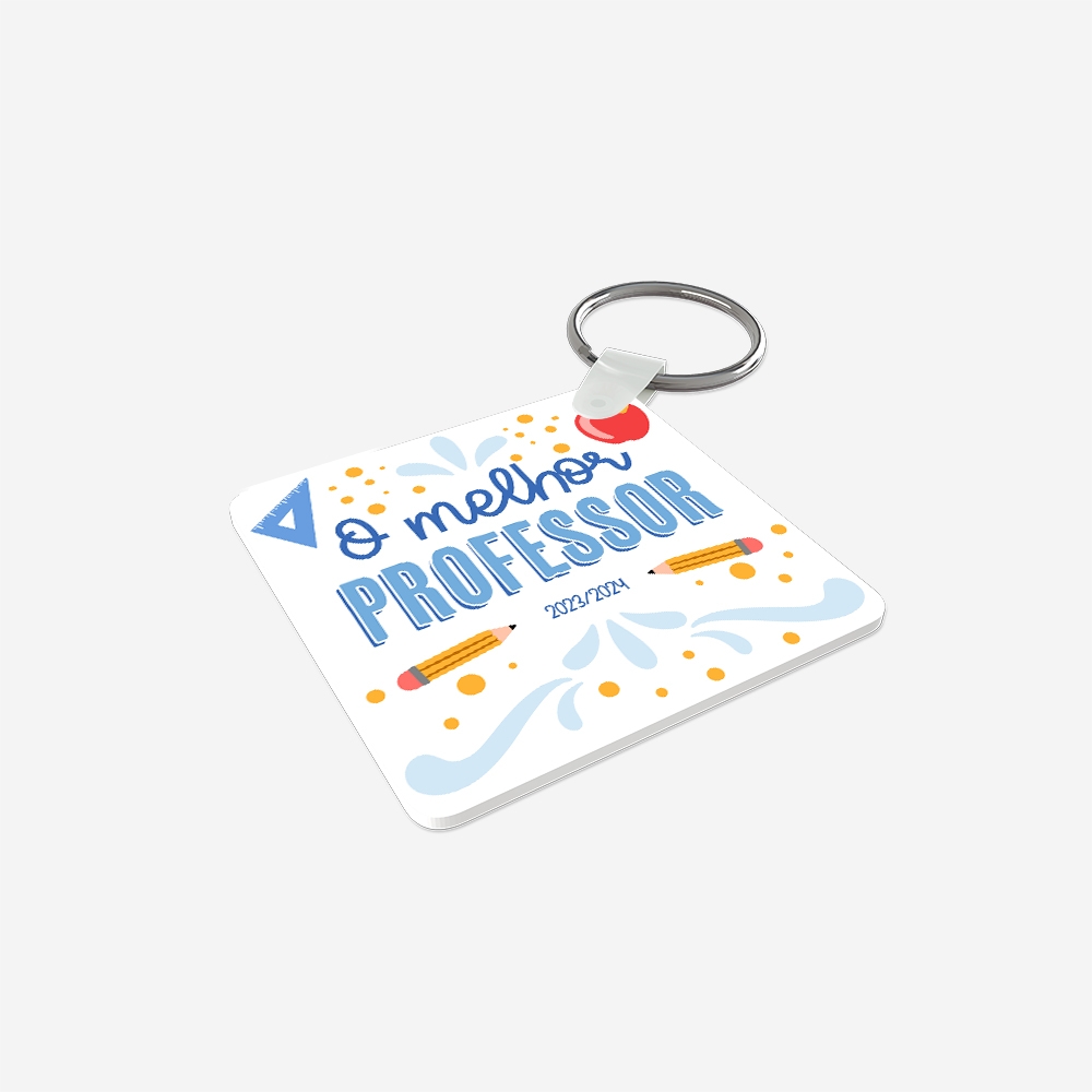 Produzido em acrílico resistente, este porta-chaves combina leveza e durabilidade. A personalização é feita por sublimação térmica nos dois lados, garantindo cores vivas e detalhes nítidos.